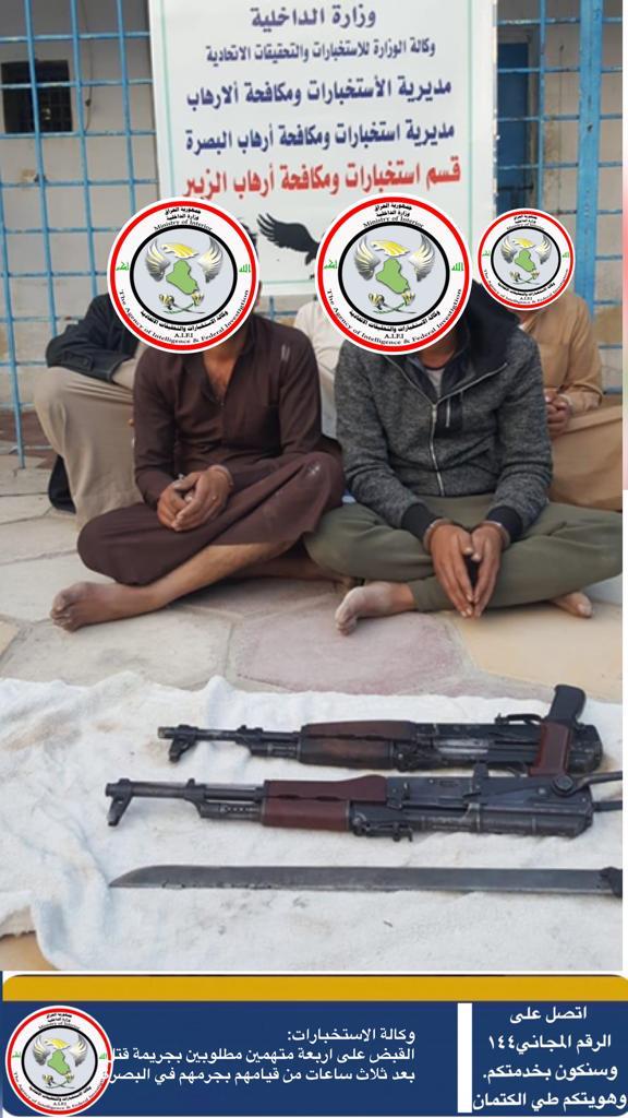 وكالة الاستخبارات: القبض على 4 متهمين مطلوبين بجريمة قتل في البصرة