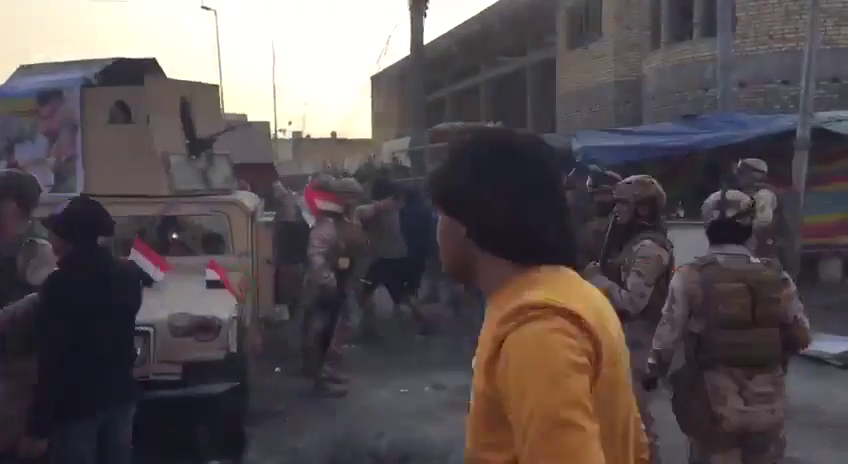 بالفيديو .. قوات الجيش تمنع الاشتباك بين مكافحة الشغب والمتظاهرين في الناصرية