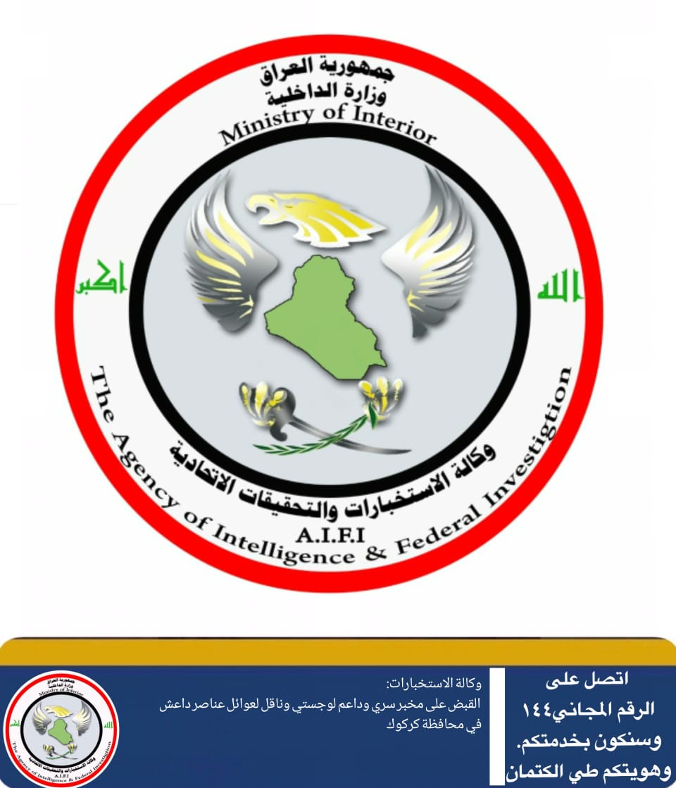 وكالة الاستخبارات: القبض على مخبر سري وداعم لوجستي وناقل لعوائل داعش في كركوك