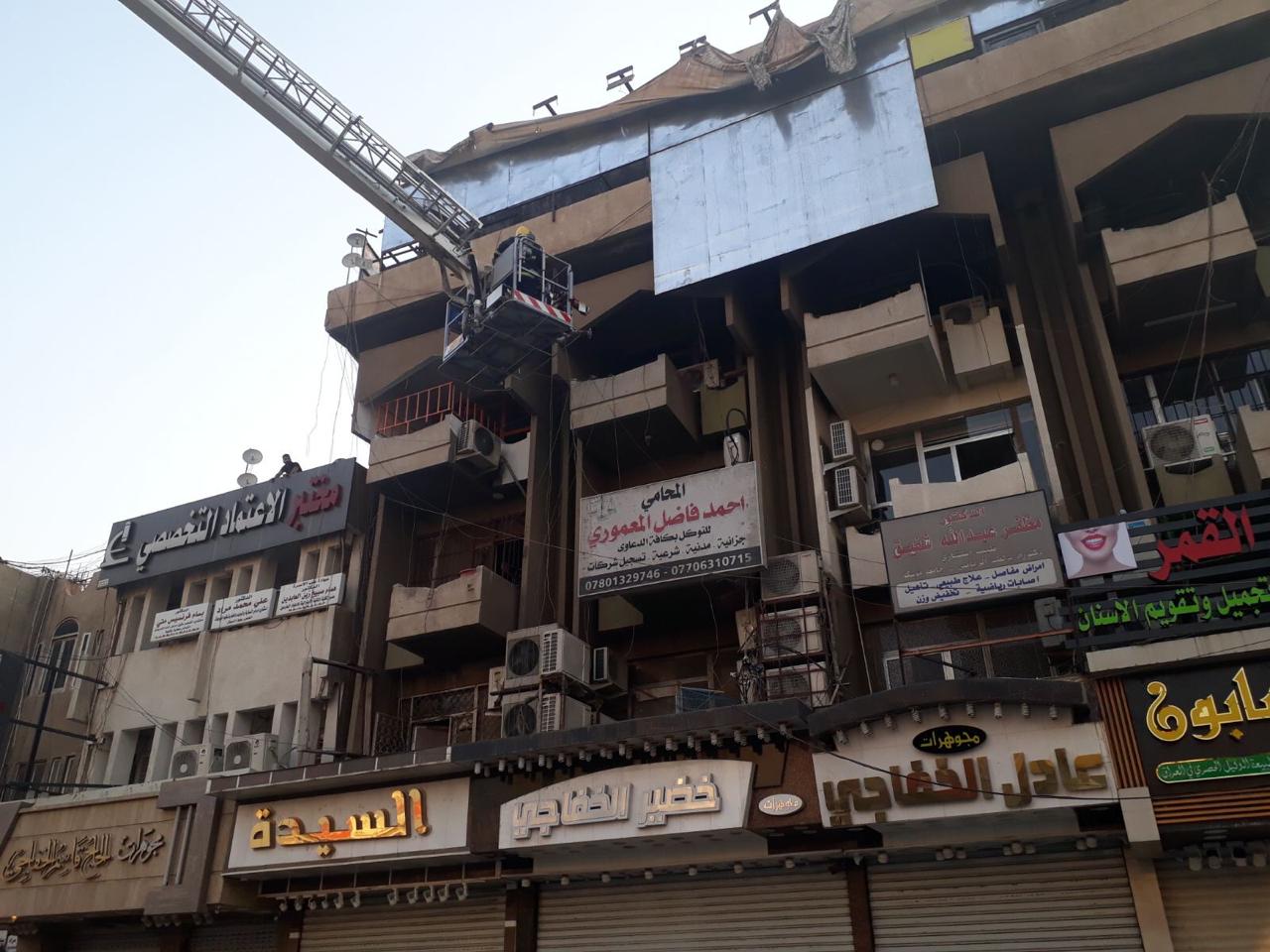بالصور .. الدفاع المدني يخمد حريق بناية في المنصور وينقذ عدداً من المواطنين
