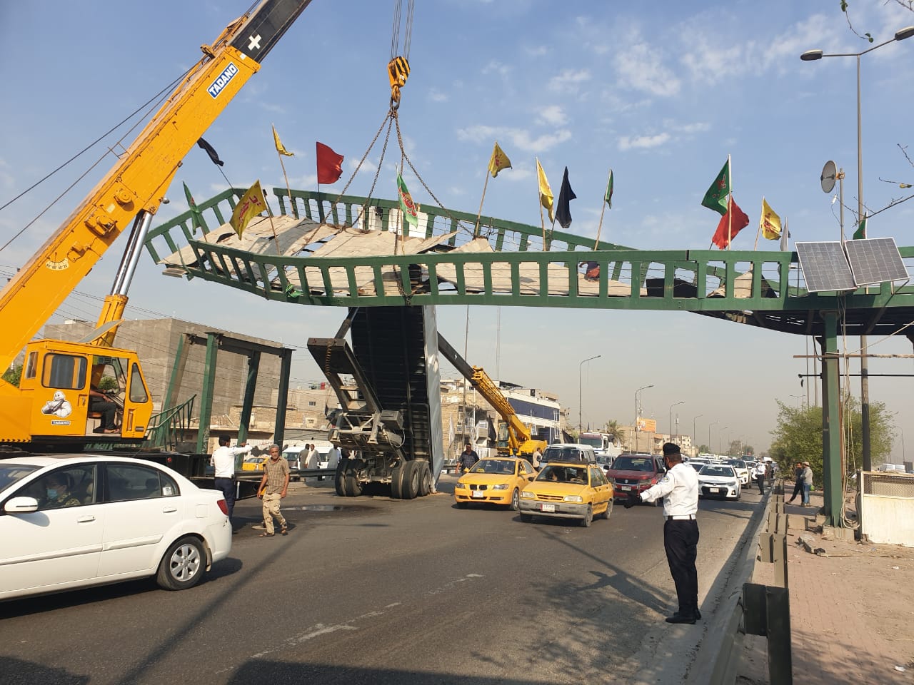 بالصور .. حادث مروري يتسبب باضرار جسيمة بمجسر للمشاة على طريق محمد القاسم في بغداد