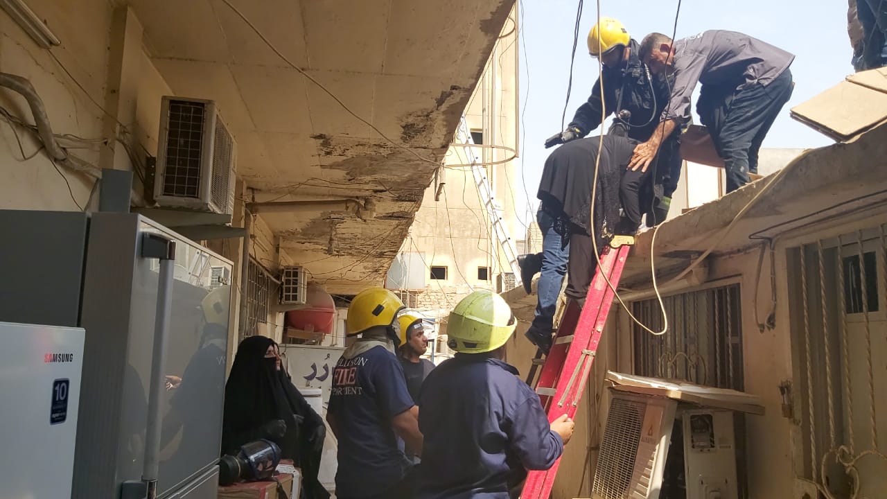 بالصور .. الدفاع المدني ينقذ 20 مواطناً من حادث حريق بناية في الكرادة وسط بغداد