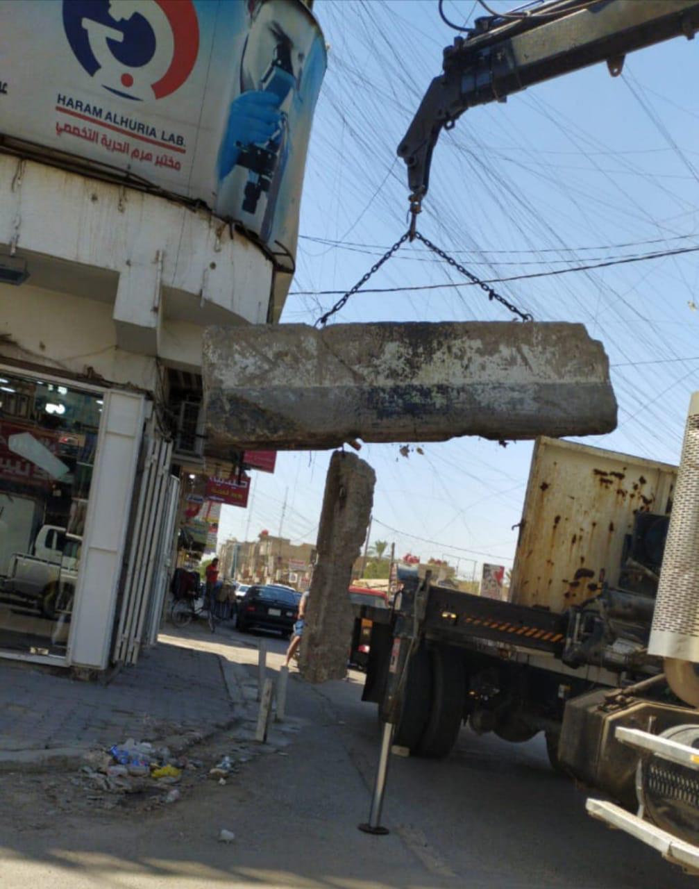 بالصور .. امانة بغداد ترفع الكتل الكونكريتية عن ازقة الشعلة المستخدمة خلال الحظر الشامل