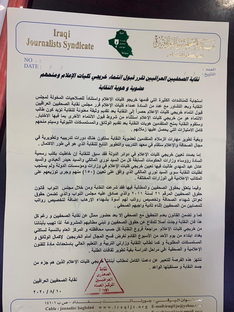 بالوثيقة .. نقابة الصحفيين تقرر قبول انتماء خريجي كليات الإعلام ومنحهم العضوية والهوية
