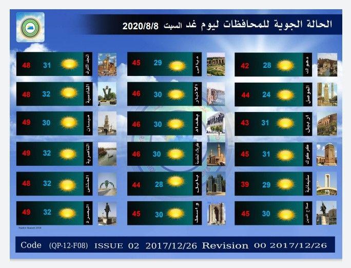 الحالة الجوية ودرجات الحرارة في العراق لليوم الجمعة والايام المقبلة