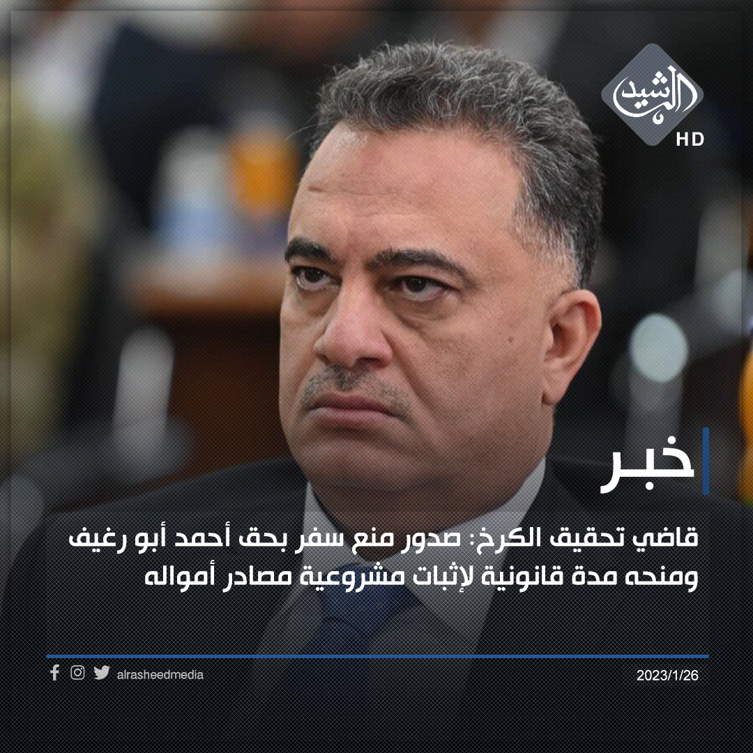 قاضي تحقيق الكرخ: صدور منع سفر بحق أحمد أبو رغيف ومنحه مدة قانونية لإثبات مشروعية مصادر أمواله