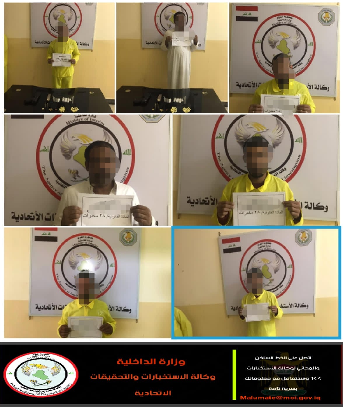 مديرية الاستخبارات والأمن تطيح بثلاثة من تجار ومروجي المخدرات في المثنى والنجف
