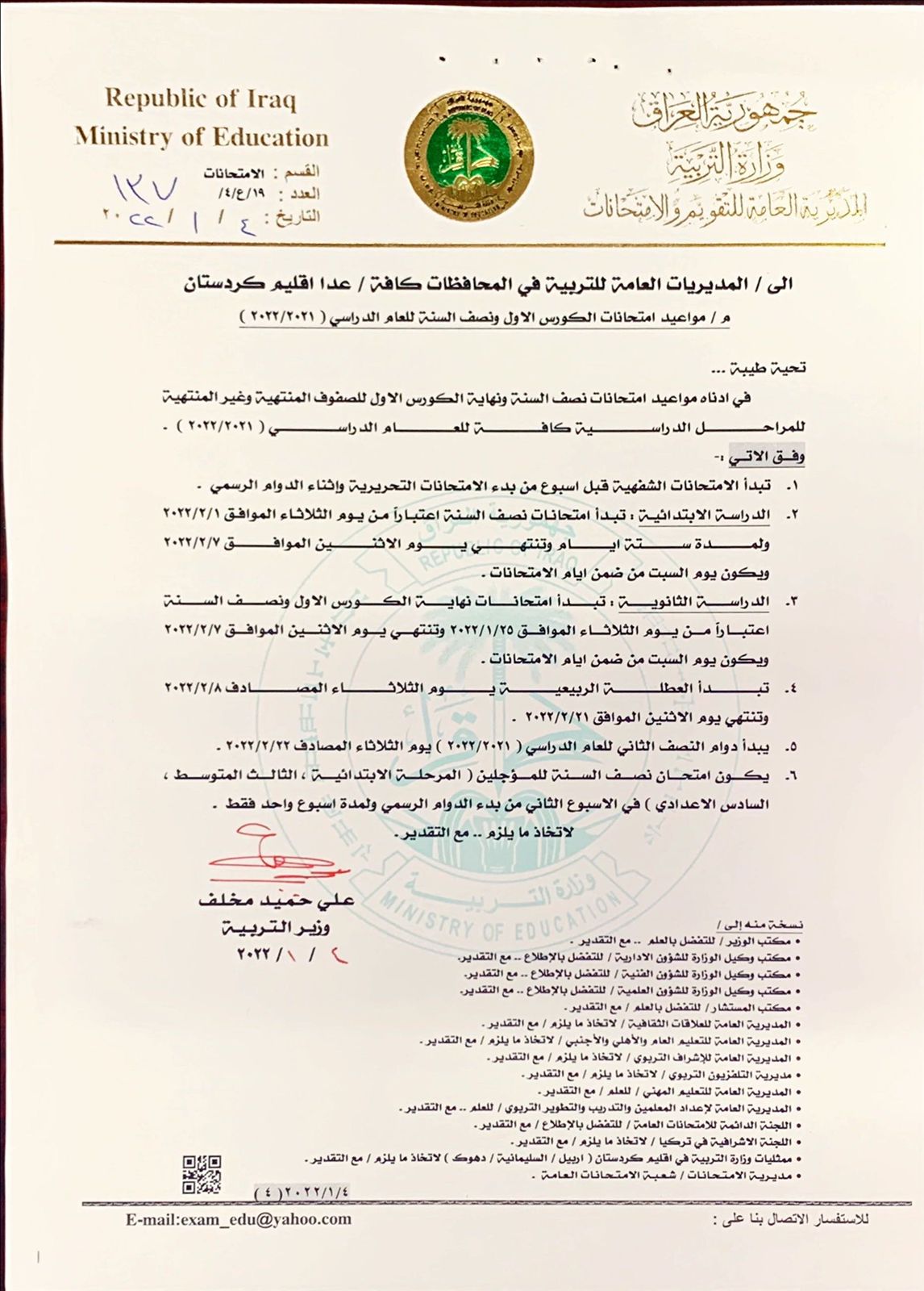 التربية تنشر نتائج الامتحانات (الدور التمهيدي) لطلبة السادس الاعدادي والثالث المتوسط