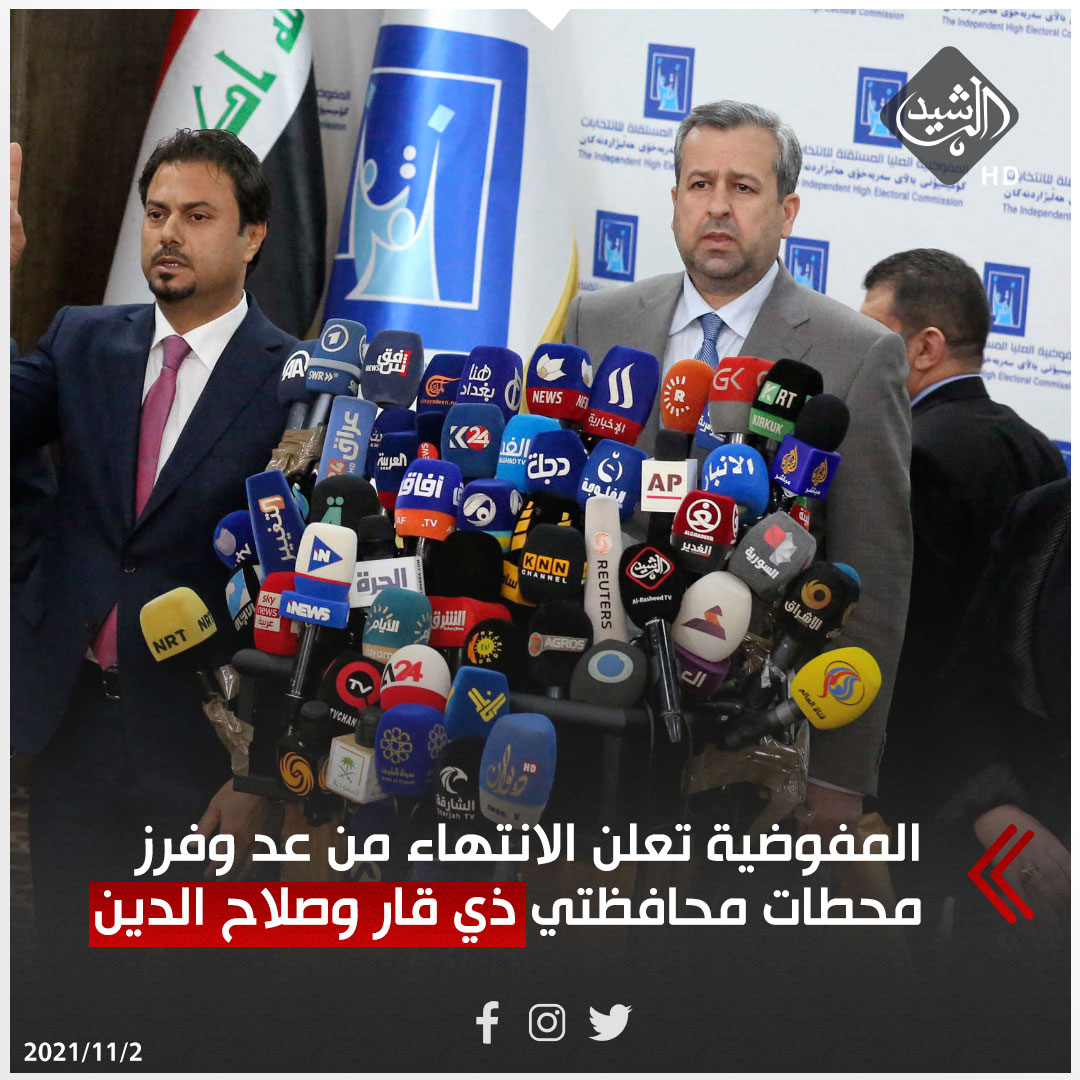 المفوضية تعلن الانتهاء من عد وفرز محطات محافظتي ذي قار وصلاح الدين