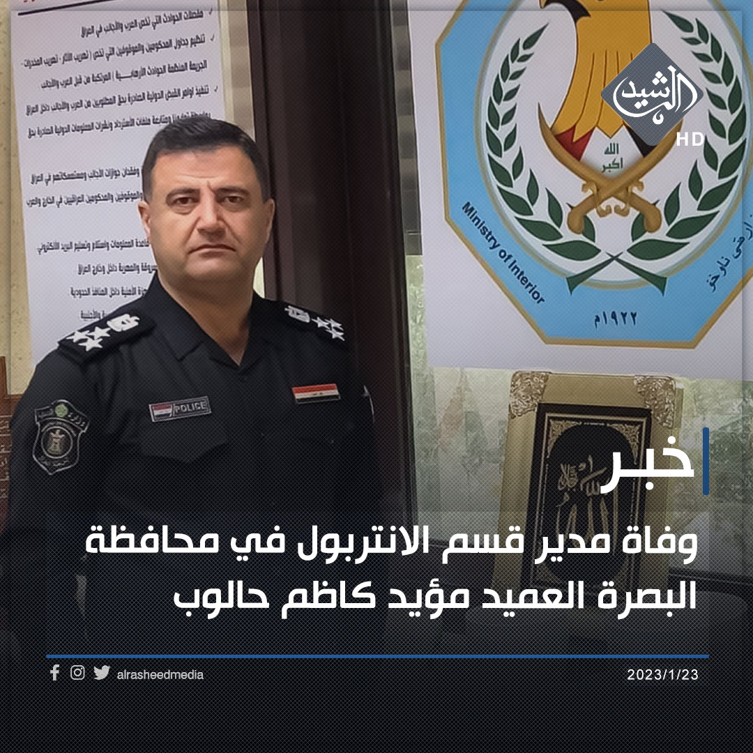 وفاة مدير قسم الانتربول في محافظة البصرة العميد مؤيد كاظم حالوب