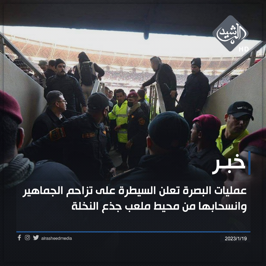 عمليات البصرة تعلن السيطرة على تزاحم الجماهير وانسحابها من محيط ملعب جذع النخلة