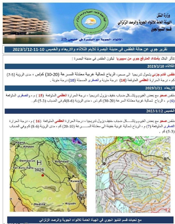 الأنواء الجوية تصدر تقريراً لحالة الطقس في البصرة