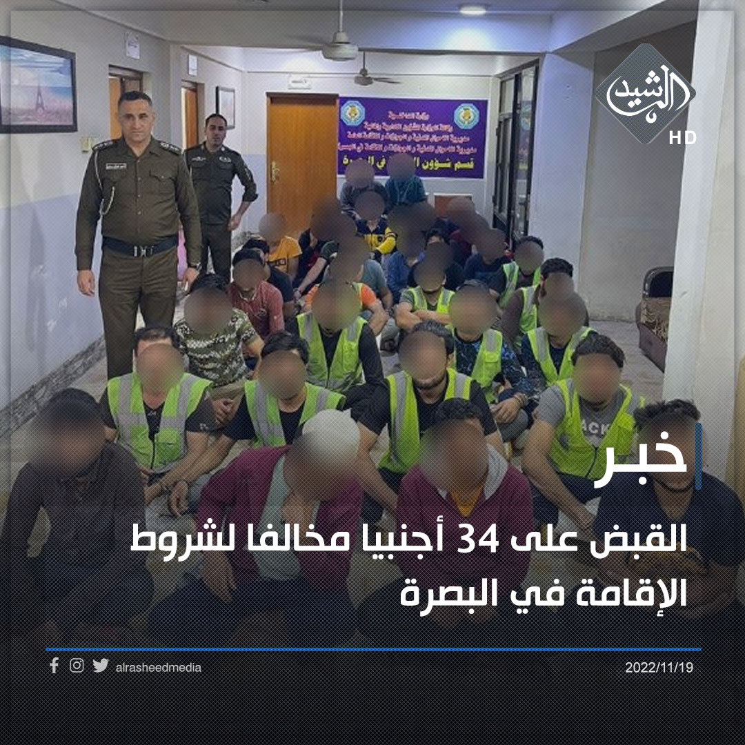 القبض على ٣٤ أجنبيا مخالفا لشروط الإقامة في البصرة