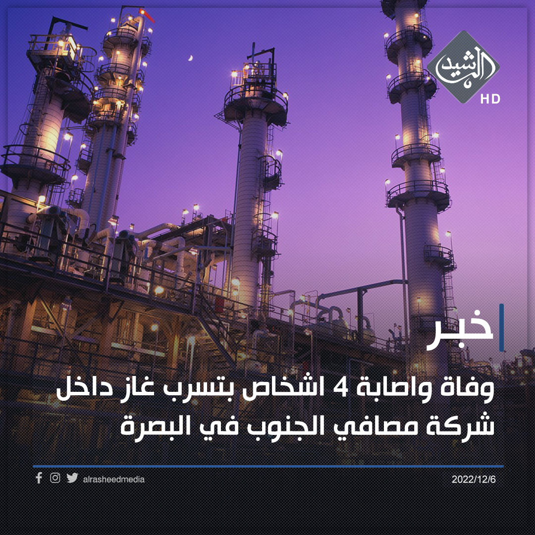وفاة واصابة 4 اشخاص بتسرب غاز داخل شركة مصافي الجنوب في البصرة