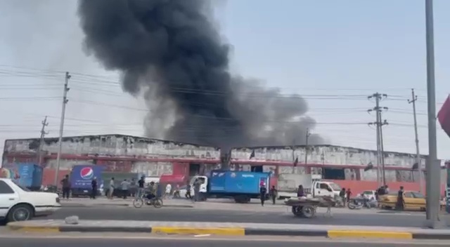 اندلاع حريق داخل مخازن تابعة لشركة بيبسي في البصرة (فيديو)