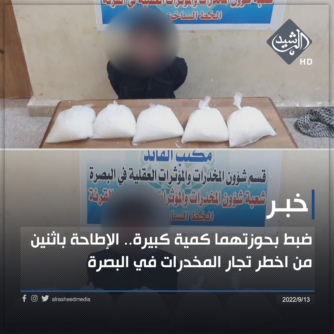 ضبط بحوزتهما كمية كبيرة.. الإطاحة باثنين من اخطر تجار المخدرات في البصرة