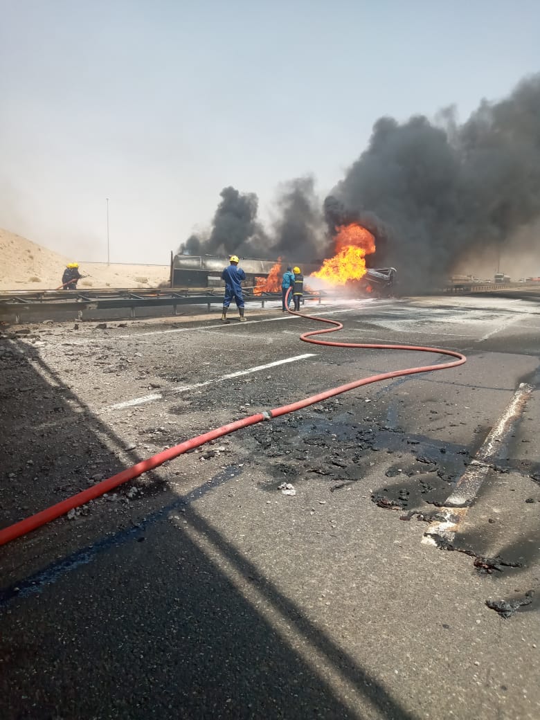 الدفاع المدني يسعف سائقاً ويخمد حريق صهريج في البصرة