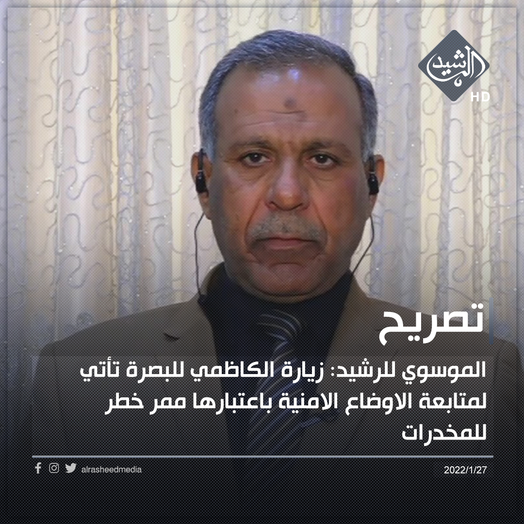 الموسوي للرشيد: زيارة الكاظمي للبصرة تأتي لمتابعة الاوضاع الامنية باعتبارها ممر خطر للمخدرات