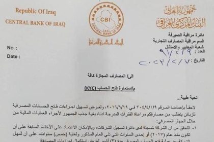 البنك المركزي: اتفاق المصارف العراقية – التركية على إجراء الحوالات وتسديدها بعملتي اليورو والليرة