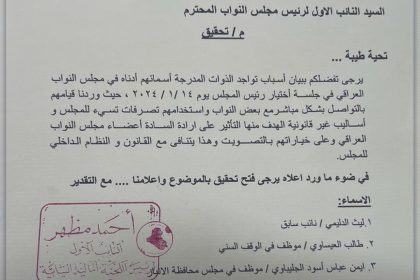 بعد تسريب صوتي يسيء لرئيس مجلس القضاء.. النائب يوسف الكلابي يطالب بالتحقيق مع النائب أحمد الجبوري.. وثيقة