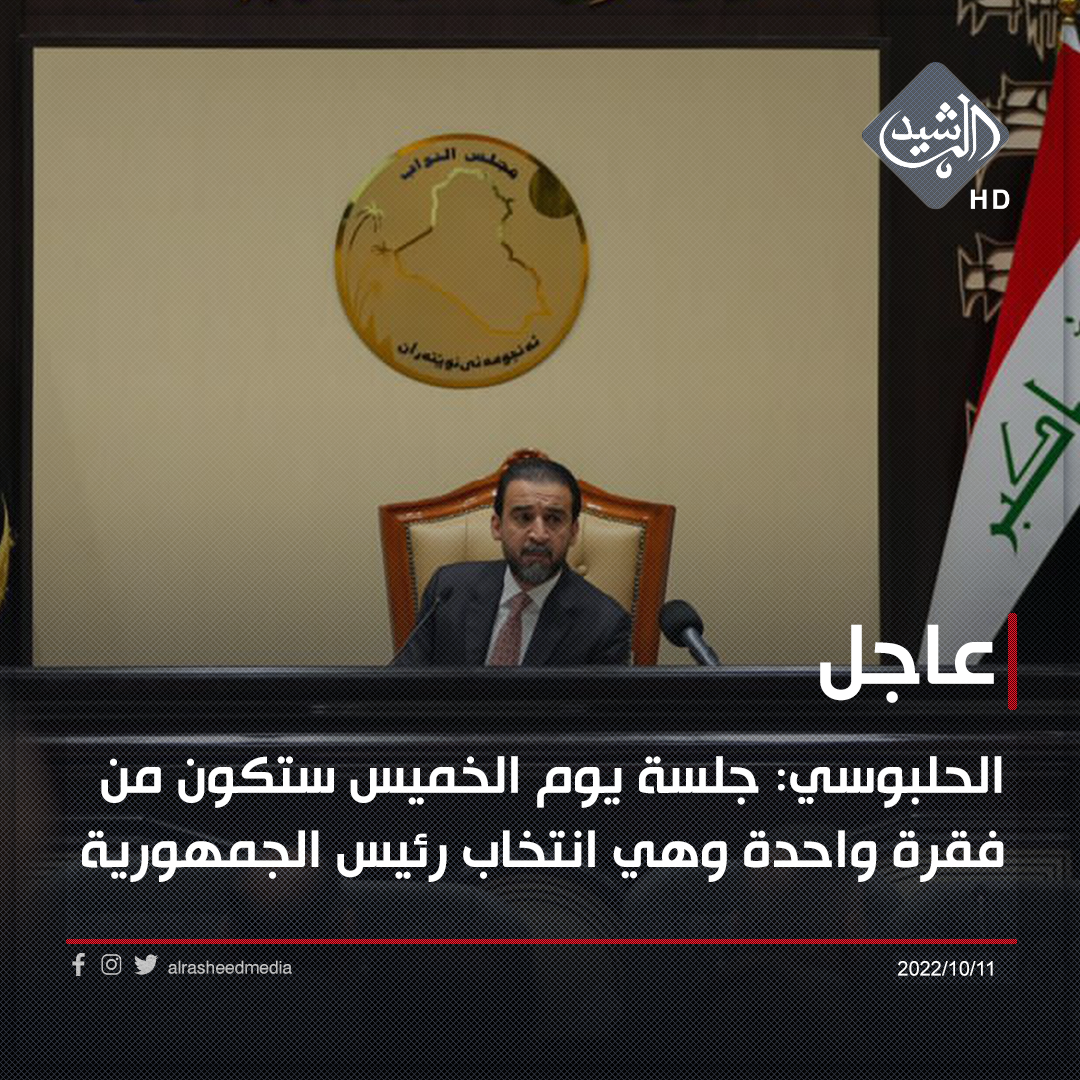 الحلبوسي: جلسة يوم الخميس ستكون من فقرة واحدة وهي انتخاب رئيس الجمهورية