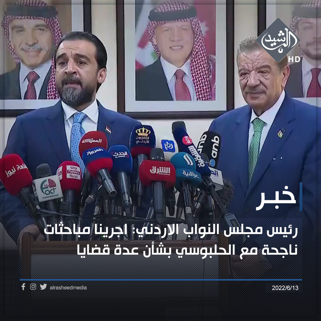 الحلبوسي: زيارتنا للأردن هي للتأكيد على تعزيز العلاقات بين البلدين بما ينعكس ايجابا على شعوبنا
