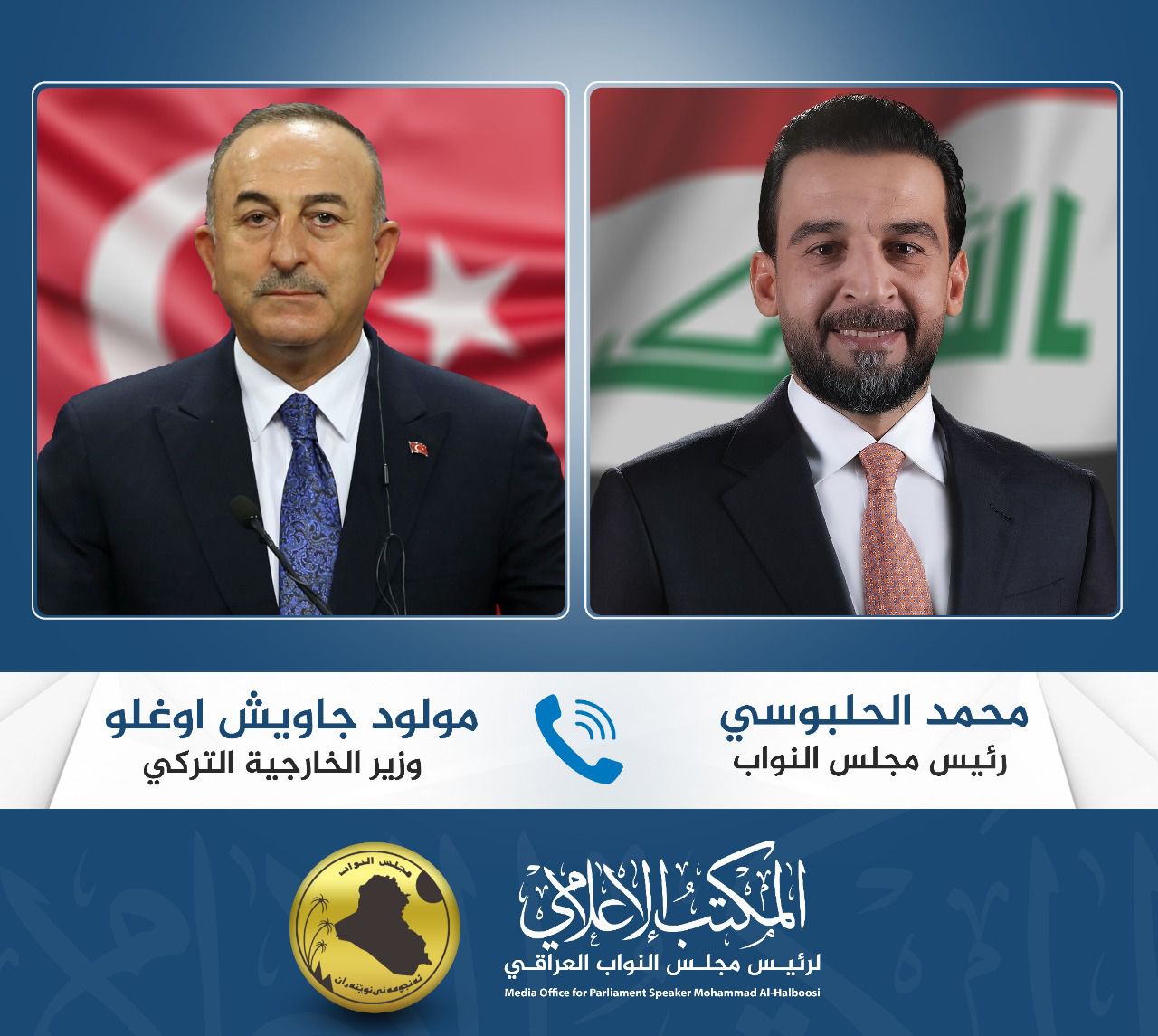 الحلبوسي يتلقى اتصالاً هاتفياً من وزير الخارجية التركي