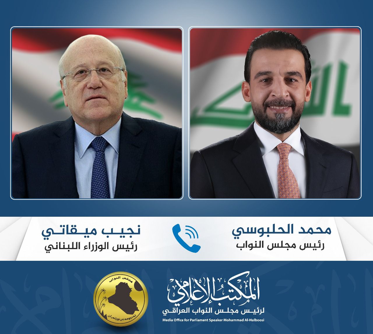 الحلبوسي يتلقى اتصالاً هاتفياً من رئيس الوزراء اللبناني