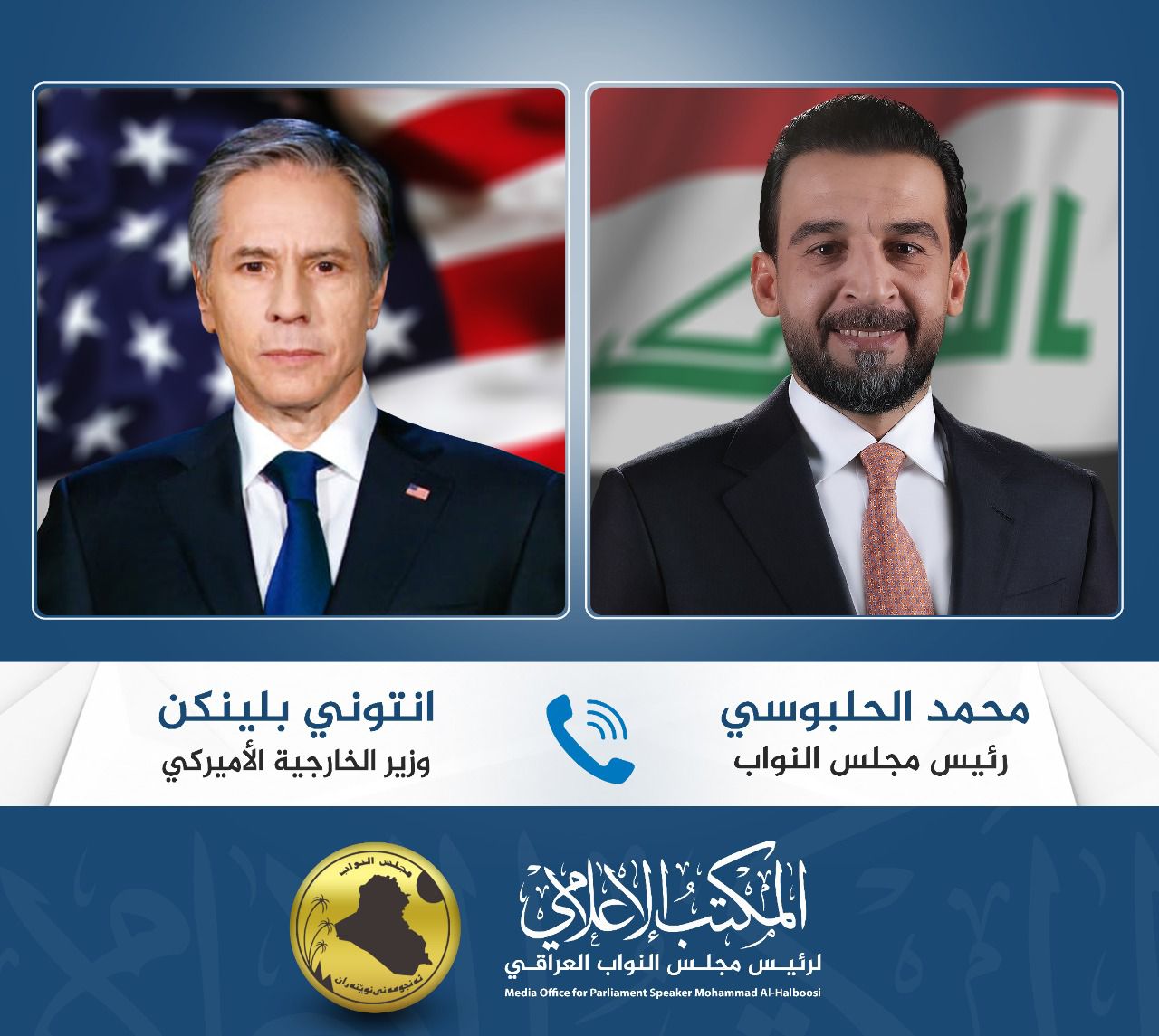 الحلبوسي يتلقى اتصالاً هاتفياً من وزير الخارجية الأميركي