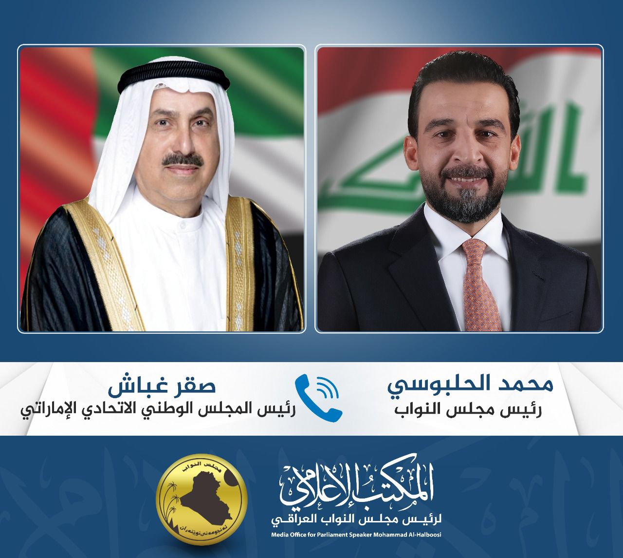 الحلبوسي يتلقى اتصالاً هاتفياً من رئيس المجلس الوطني الاتحادي الإماراتي