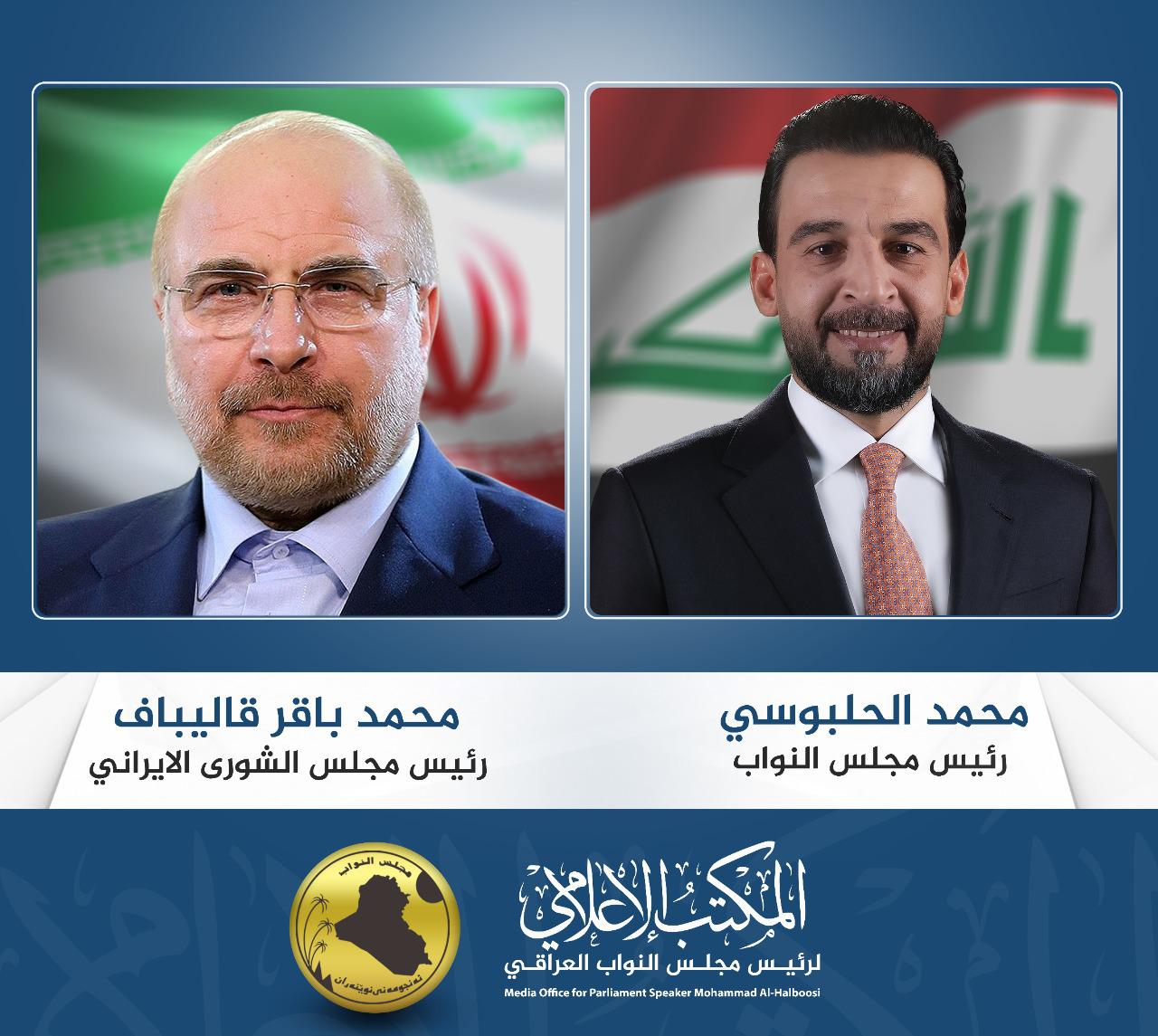 الحلبوسي يتلقى برقية تهنئة من رئيس مجلس الشورى الإيراني