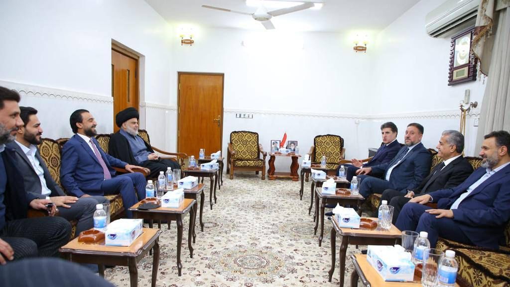 انتهاء الاجتماع بين السيد الصدر والحلبوسي ونيجيرفان بارزاني في الحنانة بالنجف