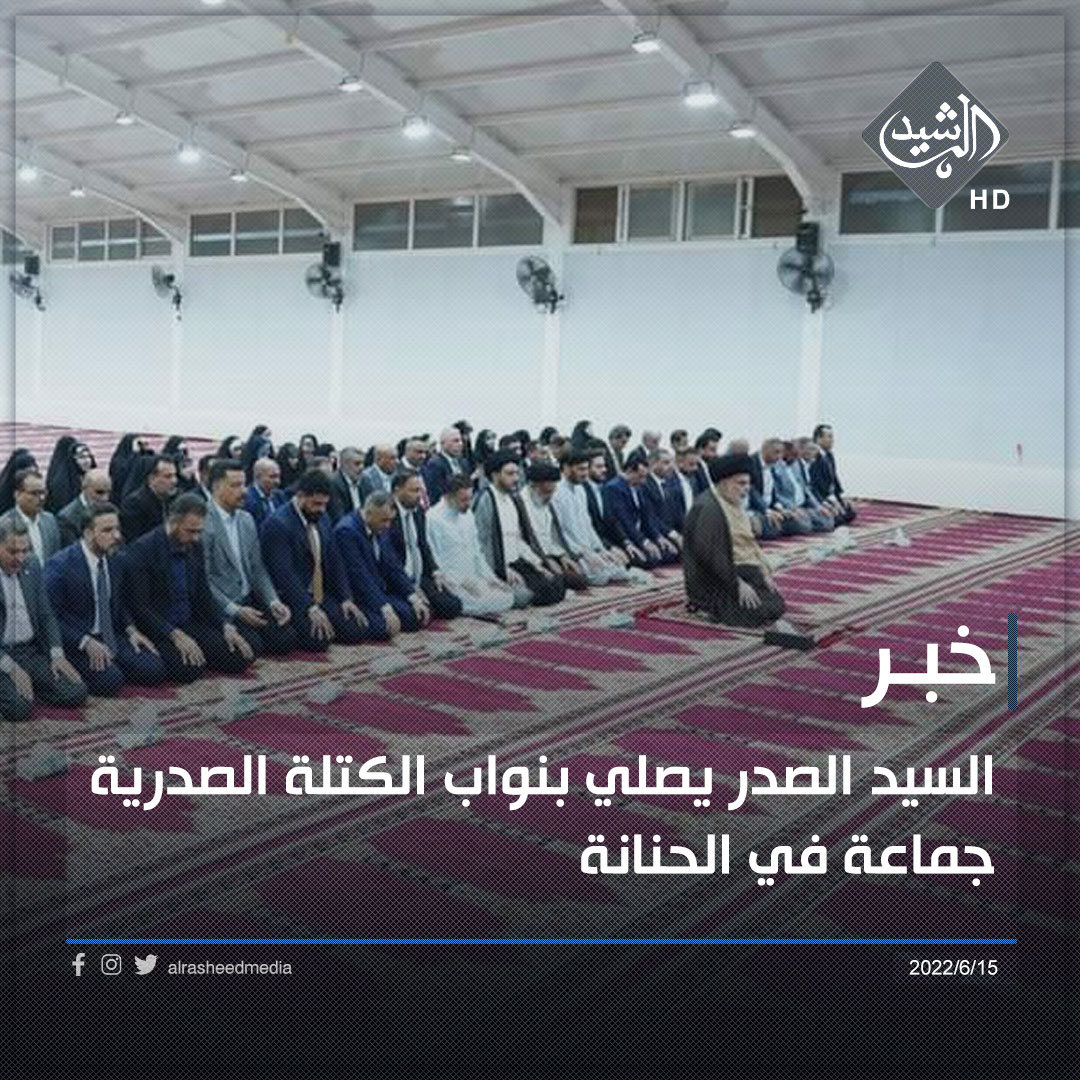 السيد الصدر يصلي بنواب الكتلة الصدرية جماعة في الحنانة (صورة)