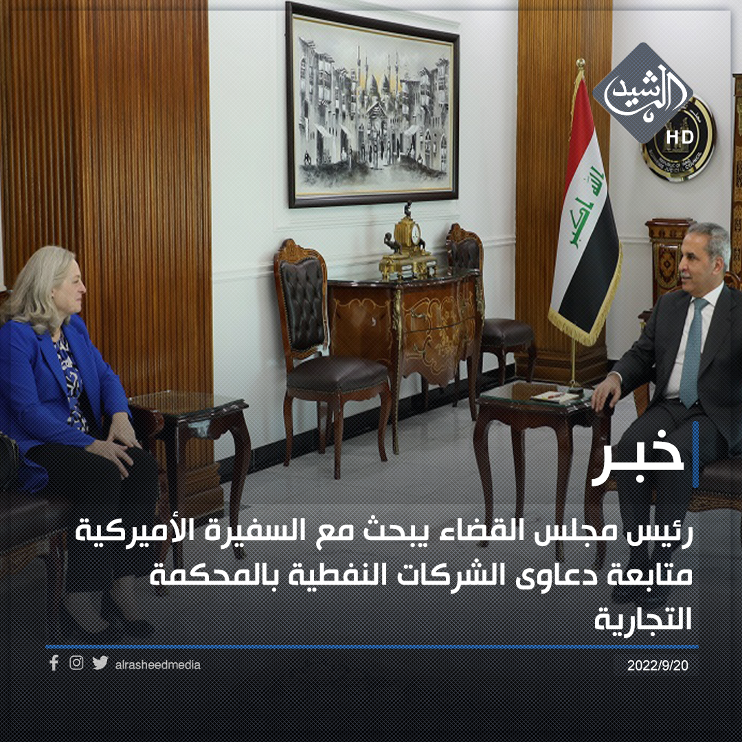 رئيس مجلس القضاء يبحث مع السفيرة الأميركية متابعة دعاوى الشركات النفطية بالمحكمة التجارية