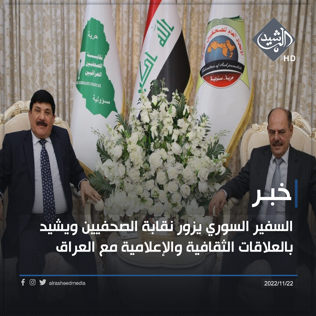 السفير السوري يزور نقابة الصحفيين ويشيد بالعلاقات الثقافية والإعلامية مع العراق