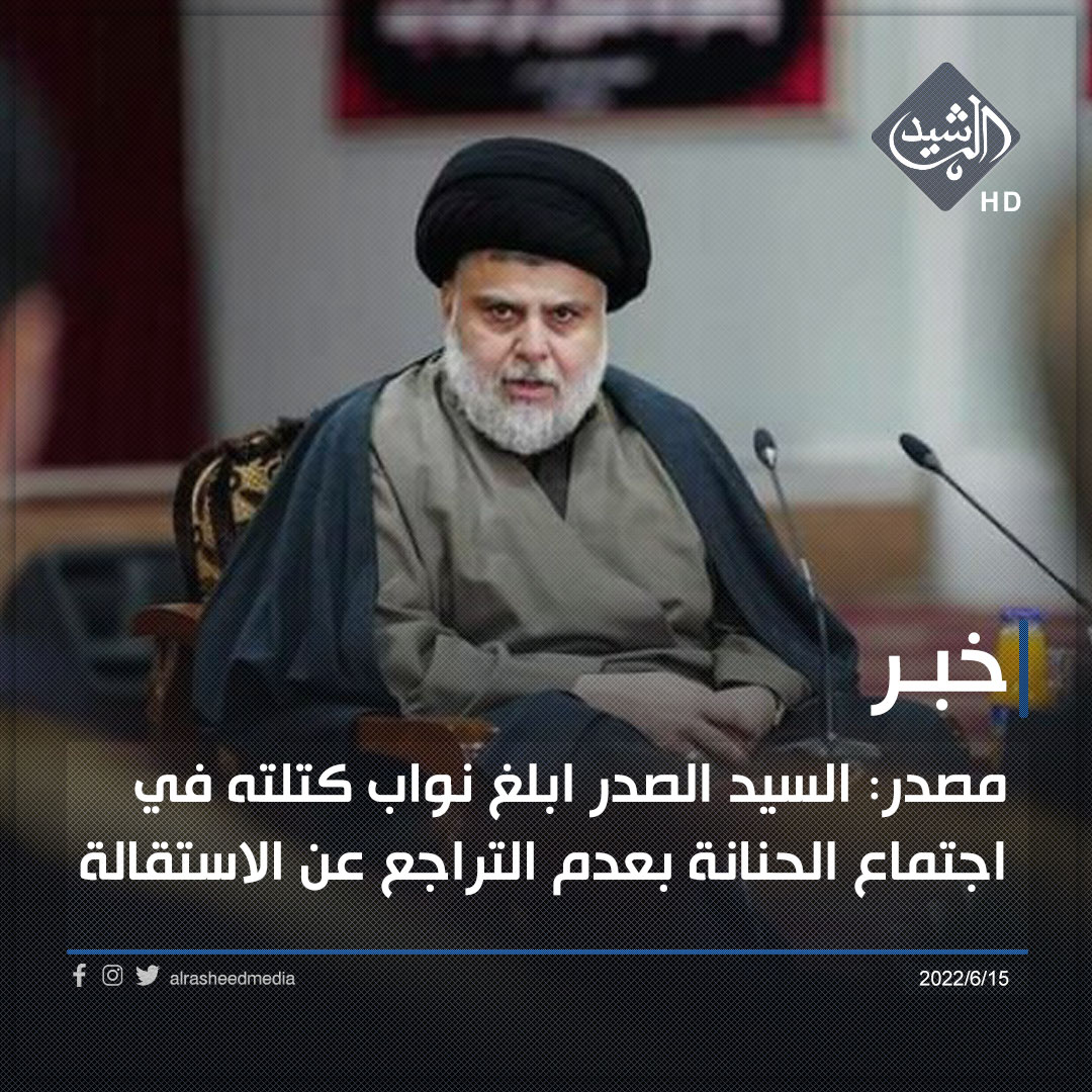 مصدر: السيد الصدر ابلغ نواب كتلته في اجتماع الحنانة بعدم التراجع عن الاستقالة
