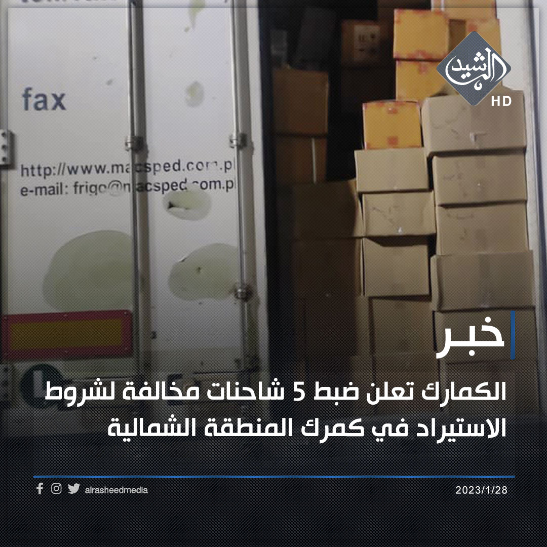 الكمارك تعلن ضبط ( ١٨ ) شاحنة مخالفة في المنطقة الشمالية