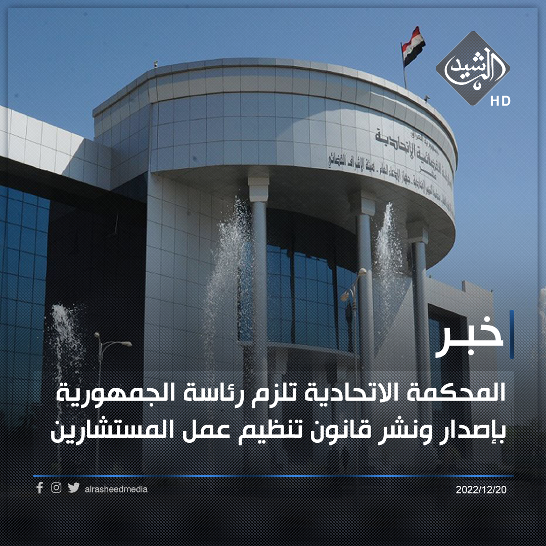 المحكمة الاتحادية تلزم رئاسة الجمهورية بإصدار ونشر قانون تنظيم عمل المستشارين