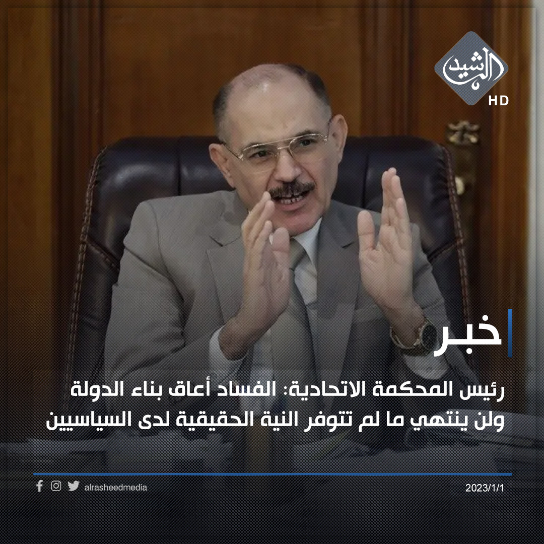 رئيس المحكمة الاتحادية: الفساد أعاق بناء الدولة ولن ينتهي ما لم تتوفر النية الحقيقية لدى السياسيين