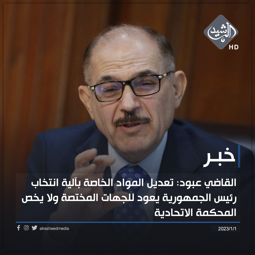 القاضي عبود: تعديل المواد الخاصة بآلية انتخاب رئيس الجمهورية يعود للجهات المختصة ولا يخص المحكمة الاتحادية