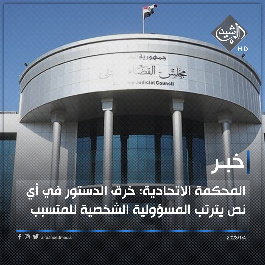 المحكمة الاتحادية: خرق الدستور في أي نص يترتب المسؤولية الشخصية للمتسبب