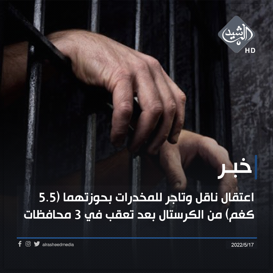 اعتقال ناقل وتاجر للمخدرات بحوزتهما (5.5 كغم) من الكرستال بعد تعقب في 3 محافظات