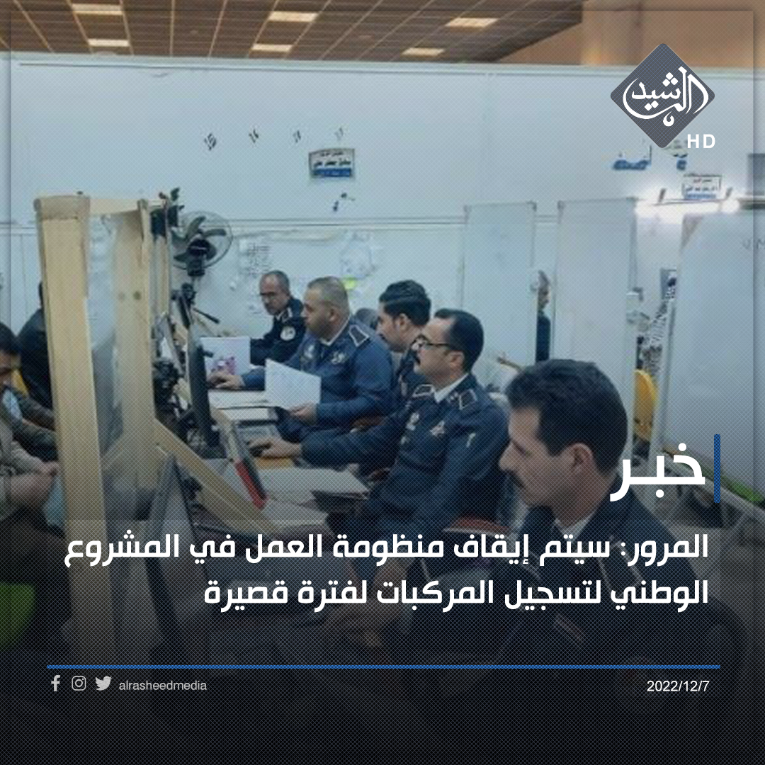 المرور: سيتم إيقاف منظومة العمل في المشروع الوطني لتسجيل المركبات لفترة قصيرة