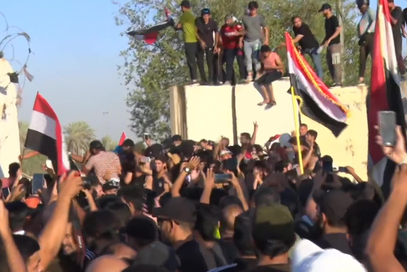بالفيديو .. المتظاهرون يقتحمون المنطقة الخضراء