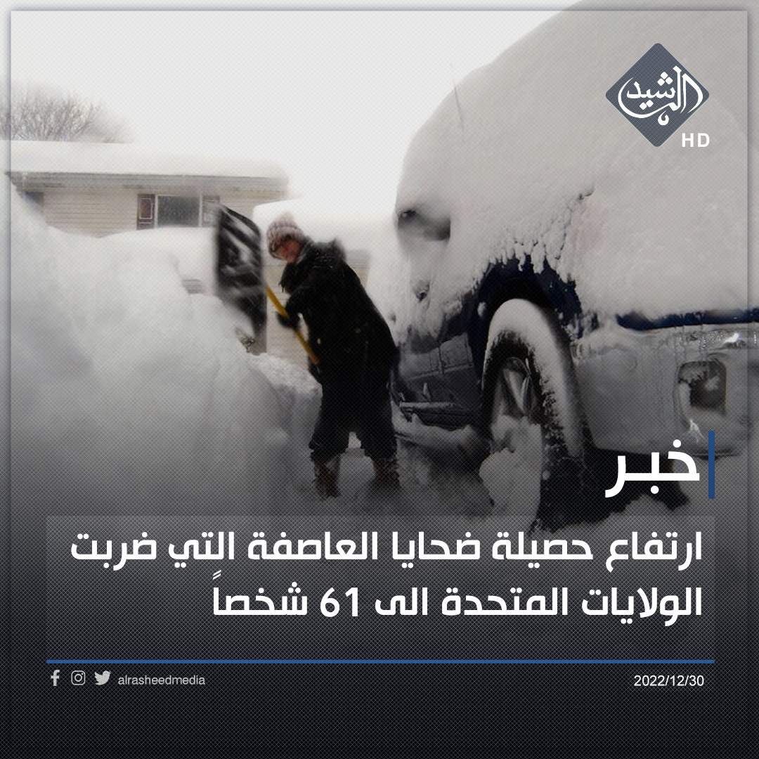 ارتفاع عدد ضحايا العاصفة الثلجية في الولايات المتحدة إلى أكثر من 60 شخصاً