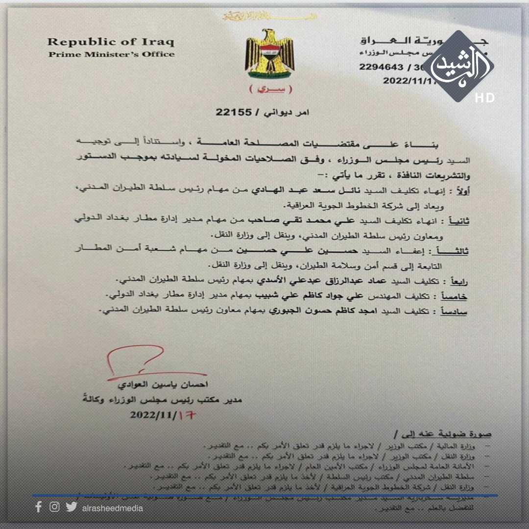 رئيس سلطة الطيران المدني يؤكد مواصلة العمل لتطبيق المعايير الدولية بجميع المطارات العراقية