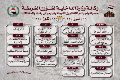 شؤون الشرطة تعلن نتائج واجباتها في بغداد والمحافظات خلال أسبوع