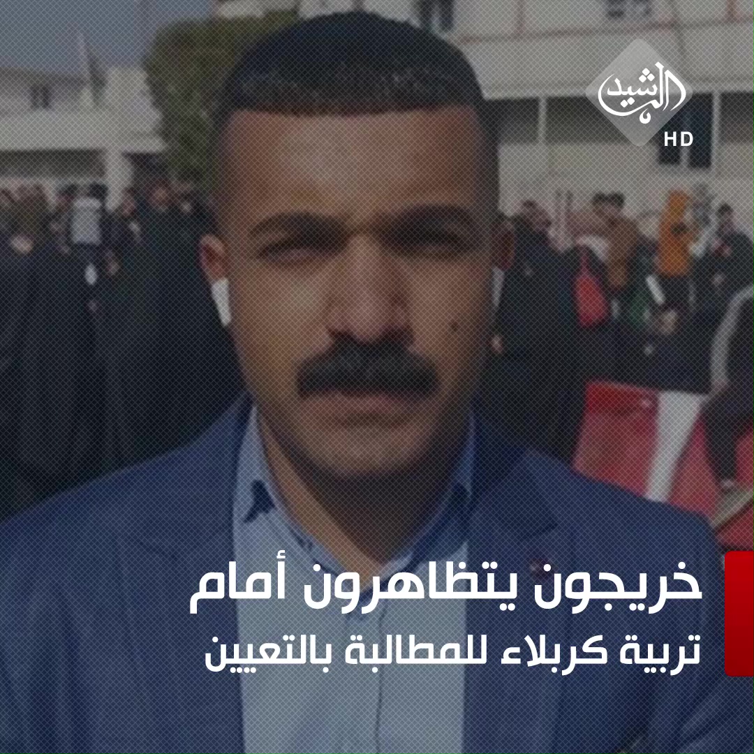 بالفيديو.. خريجون يتظاهرون أمام تربية كربلاء للمطالبة بالتعيين
