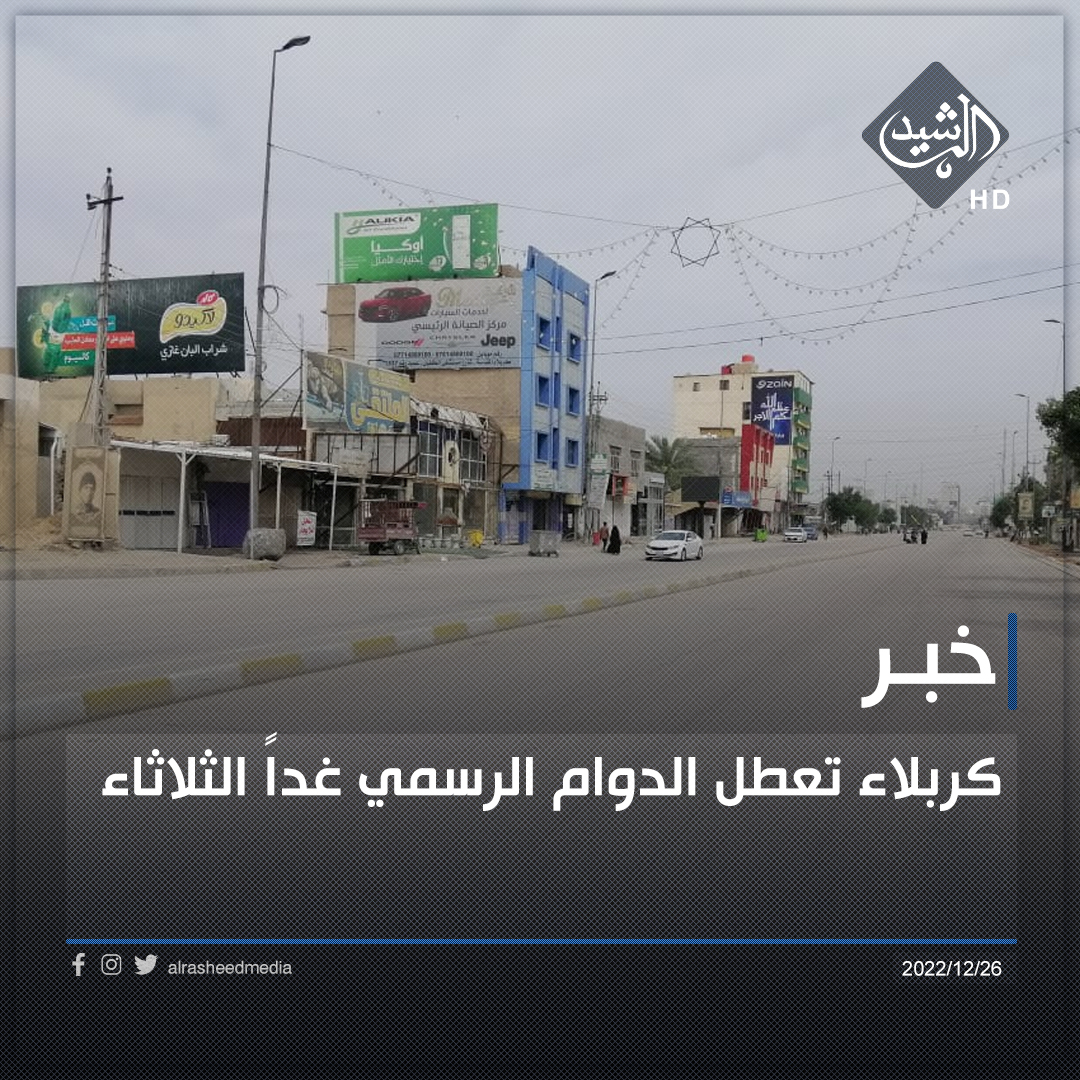 كربلاء تعطل الدوام الرسمي غداً الثلاثاء