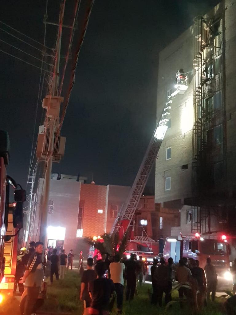 مصرع واصابة ٢٢ شخصا نتيجة حريق اندلع في فندق وسط كربلاء